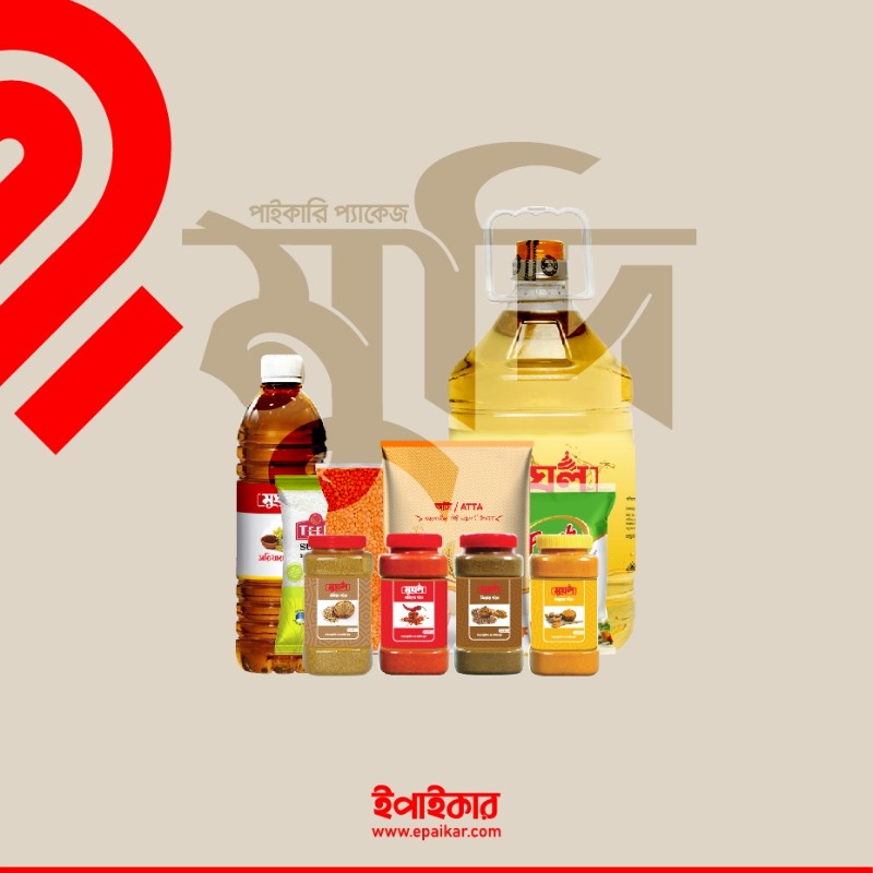 ১. সয়াবিন তেল ৫ লিটার২. সরিষার তেল ৯০০ গ্রাম৩. মসুর ডাল ২ কেজি৪. চিনি ২ কেজি৫. আটা / ময়দা ২ কেজি৬. হলুদ গুড়া ২০০ গ্রাম৭. মরিচ গুড়া ২০০ গ্রাম৮. জিরা গুড়া ২০০ গ্রাম৯. ধনিয়া গুড়া ২০০ গ্রাম10. চিনিগুড়া চাল ১ কেজি
